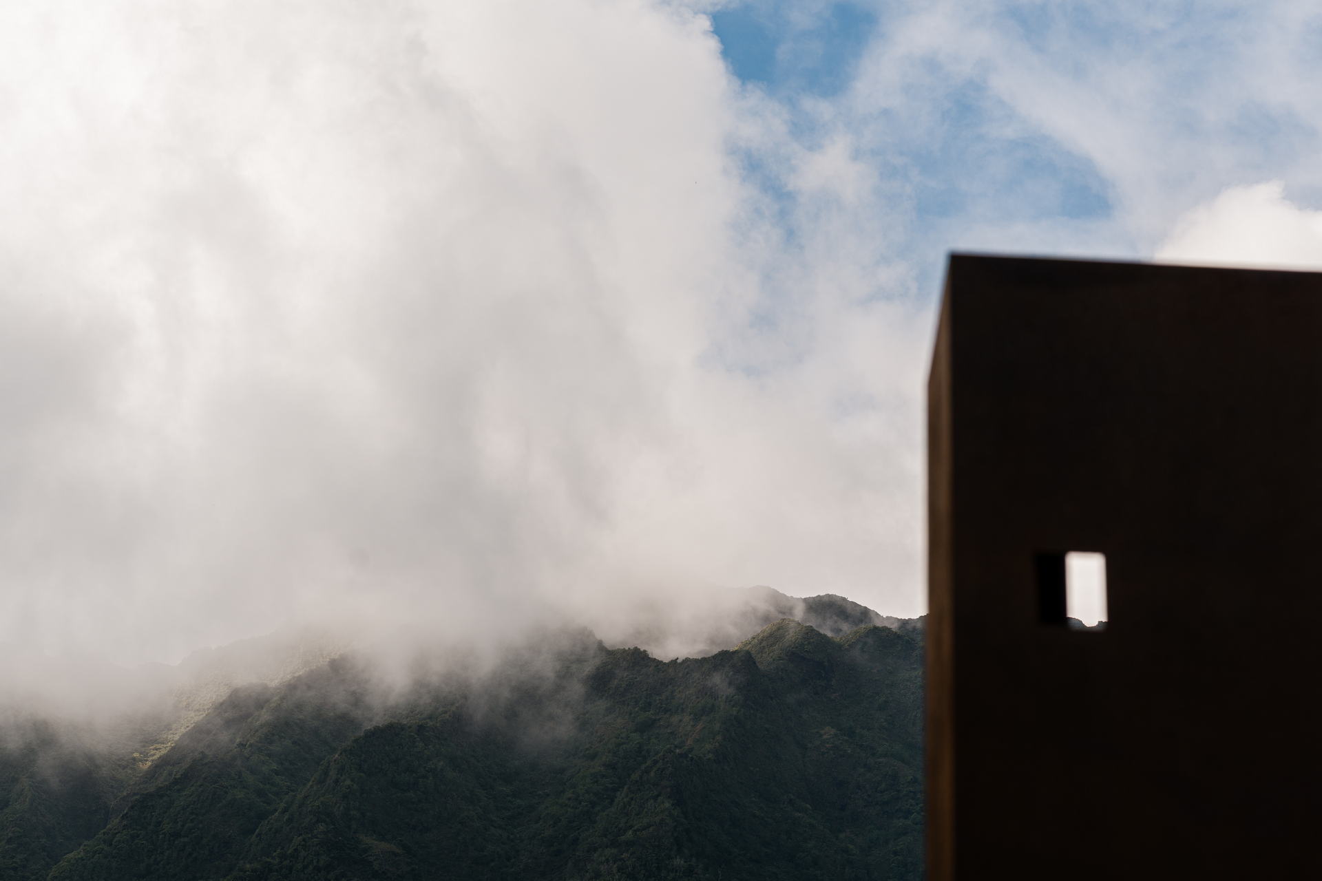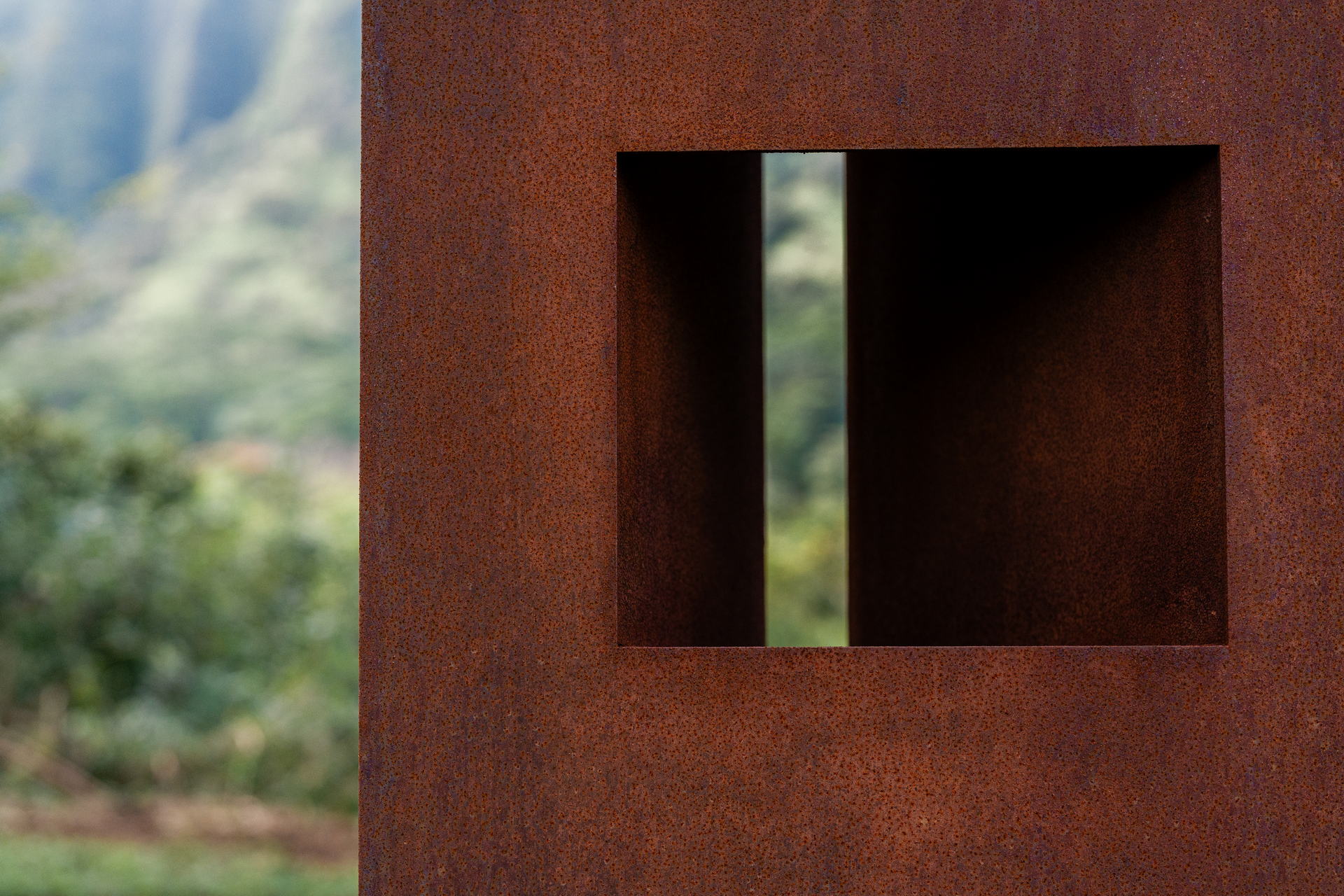 By looking through these apertures, the viewer occupies the space between these realms. The work does not claim the mountains; it frames them as portals. It asks us to listen to the wind moving across the ridgeline, to the rain settling into the valleys, and to the ʻike (knowledge) held within the contours of stone and forest.